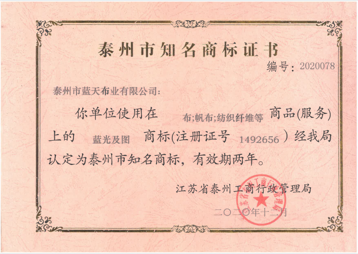 知名商標(biāo)證書(shū)